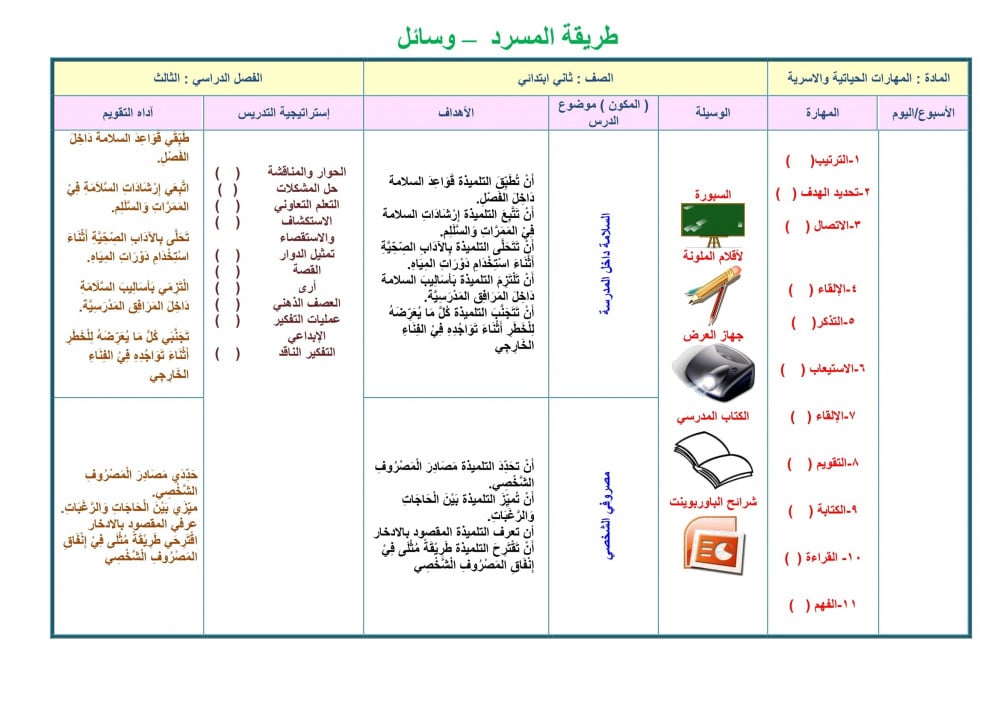 تحضير مادة مهارات حياتية واسرية ثاني ابتدائي الفصل الدراسي الثالث