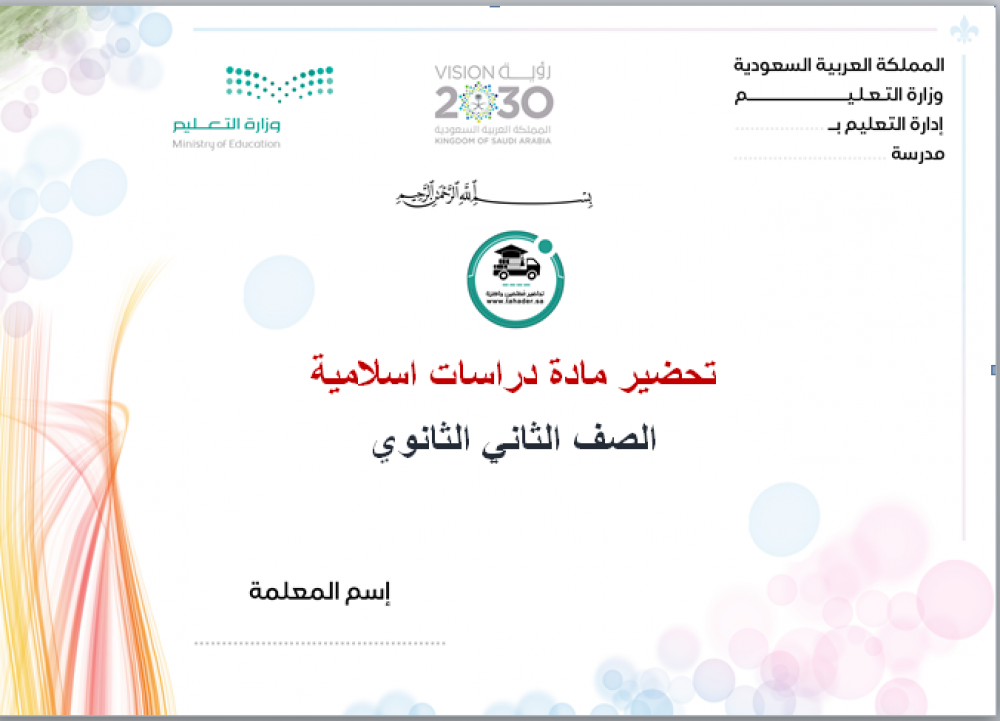ورق عمل مادة الدراسات الإسلامية ثاني ثانوي تربية فكرية الفصل الدراسي الأول