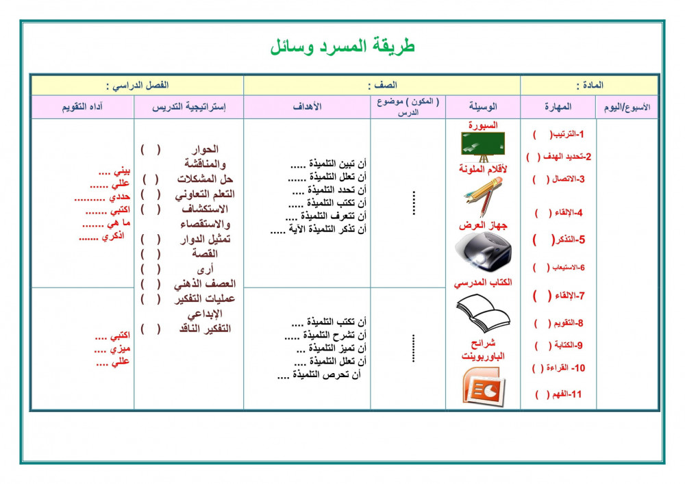 للطلب الوسائل والإستراتيجيات الحديثة - لكل درس وسيلة واستراتيجية ممتعه