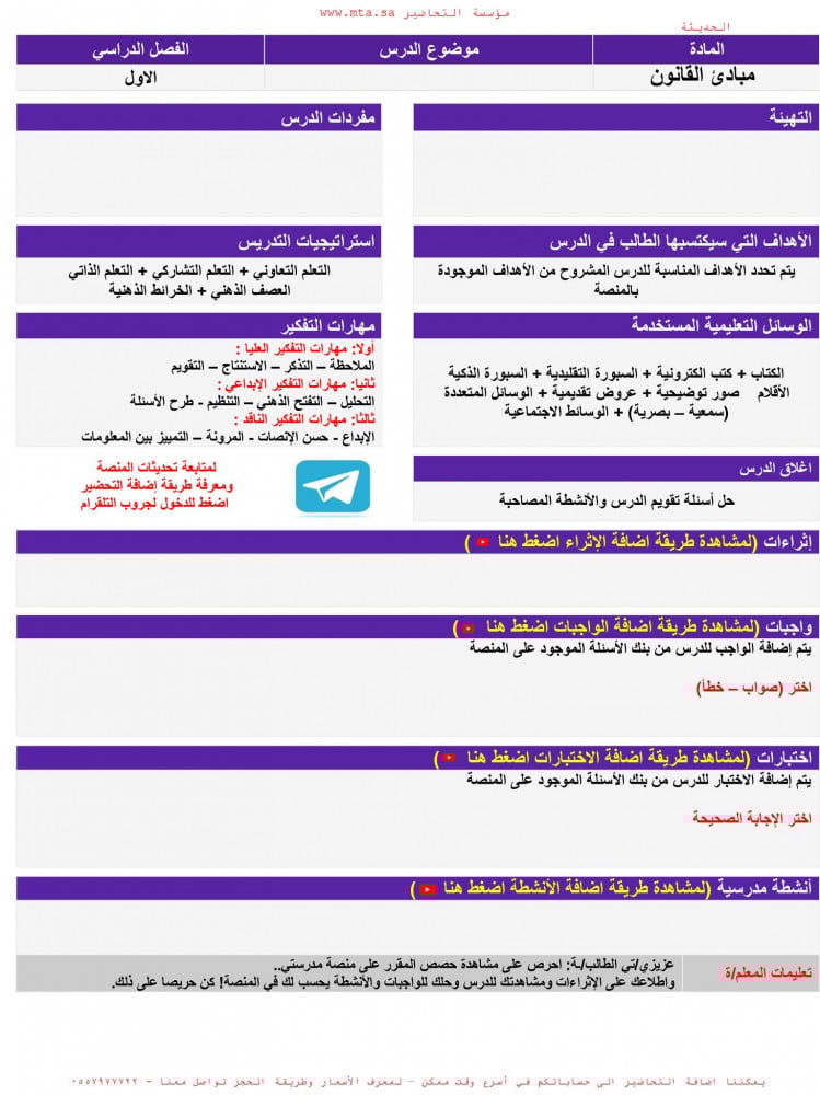 نقوم بإضافة التحضير بناء على توزيع المنهج المعتمد من وزارة التعليم مع إضافته لكافة الفصول