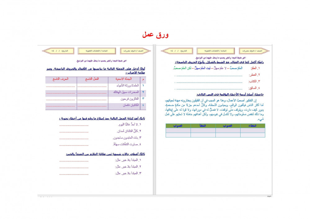شرح درس الابتداء ونواسخه الفعلية والحرفية الكفايات اللغوية 1 مقررات