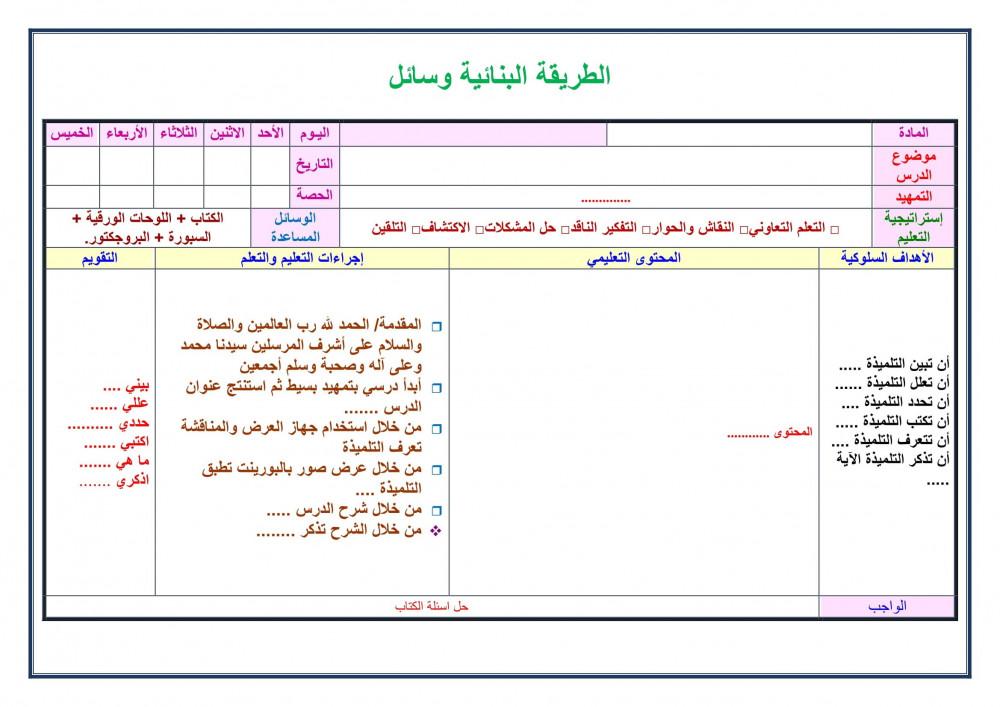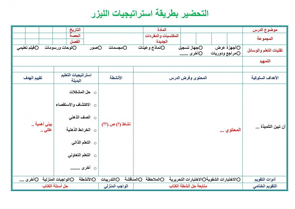 للطلب الوسائل والإستراتيجيات الحديثة - لكل درس وسيلة واستراتيجية ممتعه