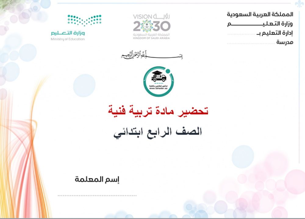 حل أسئلة مادة التربية الفنية رابع ابتدائي الفصل الدراسي الأول