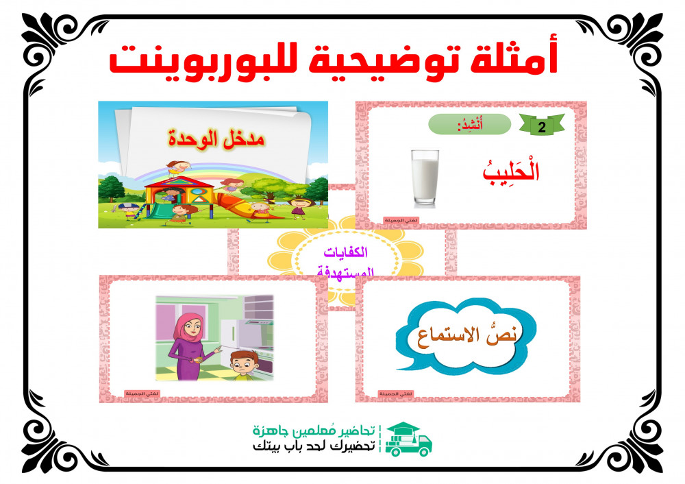 جميع طرق التحاضير الحديثة - ثلاثة عروض بور بوينت مختلفة لكل درس – كتاب الطالبة و دليل المعلمه – سجلات التقويم والمهارات حسب نظام نور – مجلدات اختبارات متنوعه – أوراق قياس لكل درس – أوراق عمل لكل درس – سجل إنجاز المعلمة – سجل إنجاز الطالبة – حل أسئلة الكتاب – خرائط ومفاهيم – أسئلة وأجوبة برنامج حسن لجميع الفترات – اثراءات – شرح متميز بالفيديو لجميع دروس المنهج