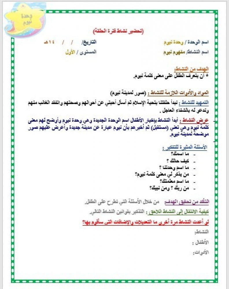 تحضير وحدة نيوم لرياض الأطفال