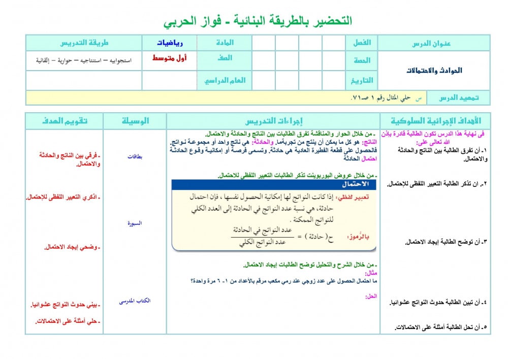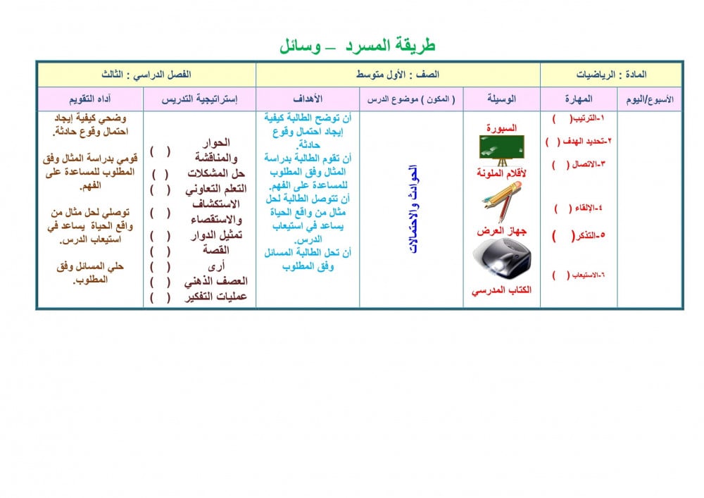 تحضير مادة رياضيات اول متوسط الفصل الدراسي الثالث