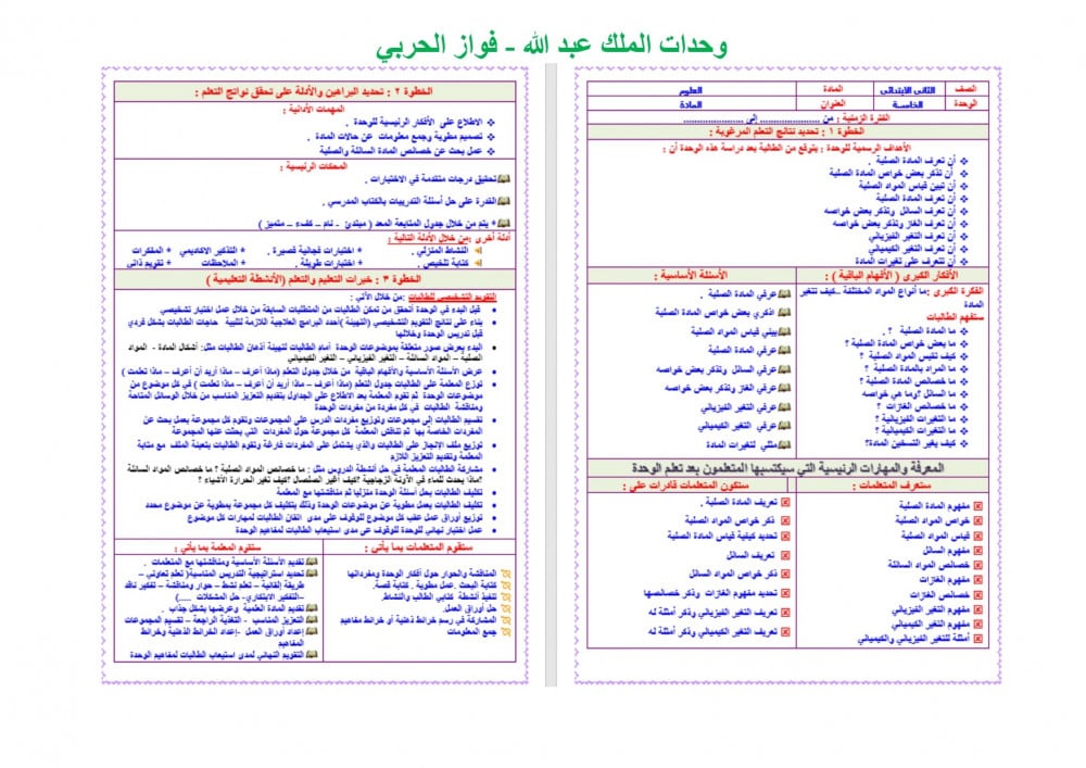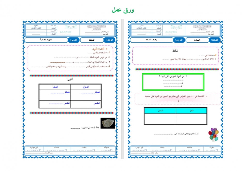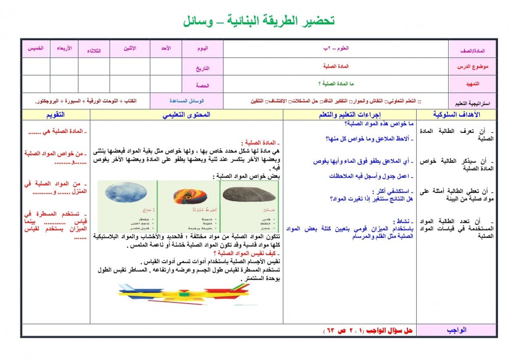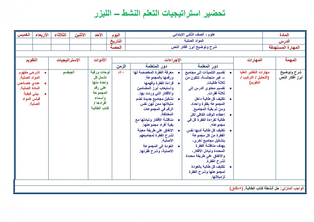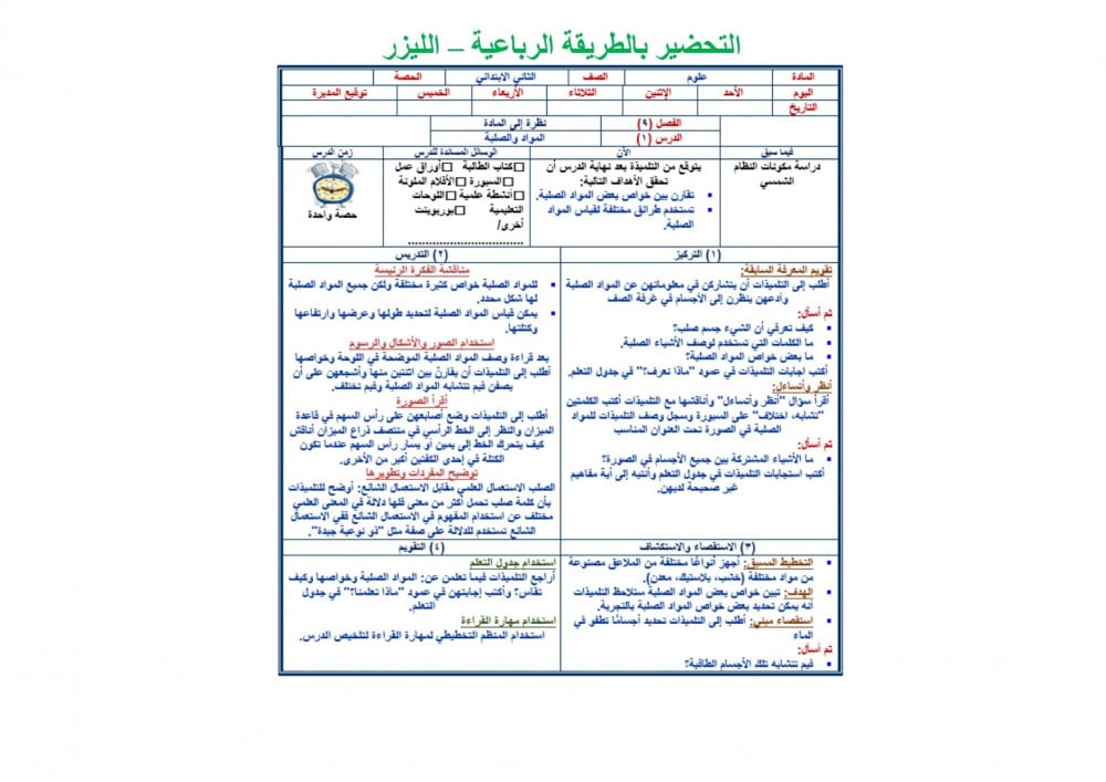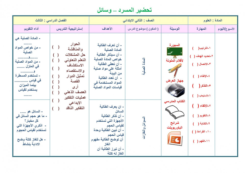 تحضير مادة علوم ثانى ابتدائي الفصل الدراسي الثالث