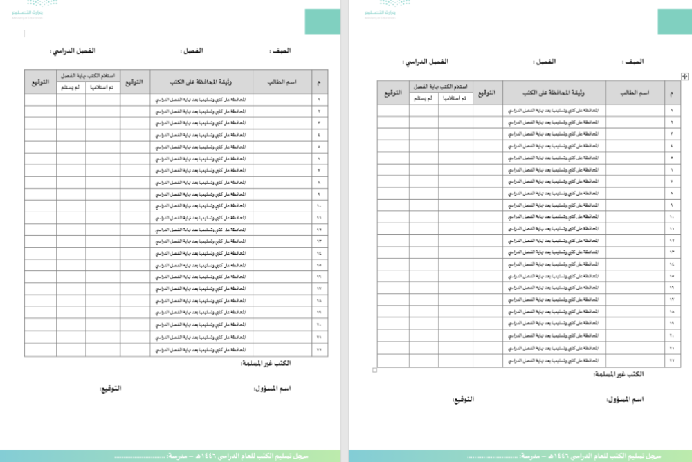 - سجل تسليم الكتب