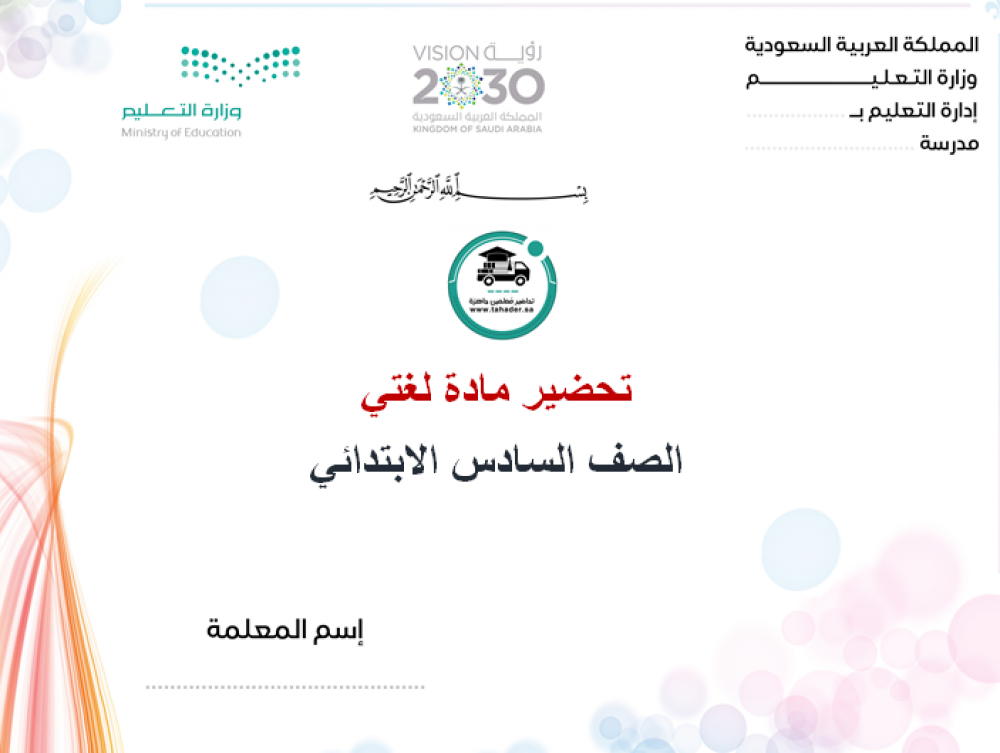بوربوينت مادة لغتي سادس ابتدائي الفصل الدراسي الأول